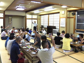 庭野さんの音頭で天神囃子唱和