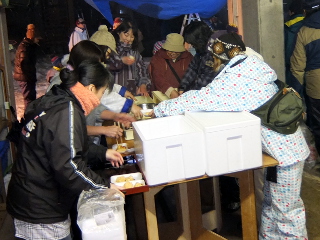 子供たちがほんやらどうの中でお餅をいただく