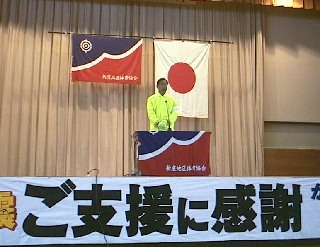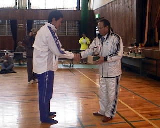ハーフ男子優勝の藤沢聡志さんに市長から優勝カップが贈られました。