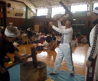 レース中に餅つきがおこなわれ参加者に振舞われました。