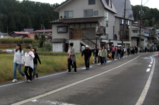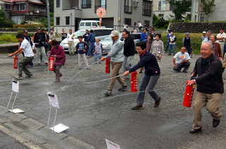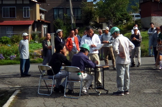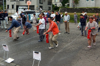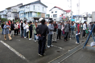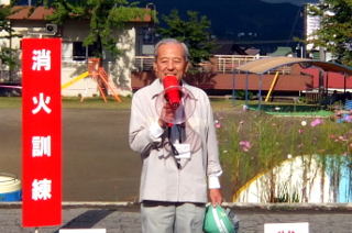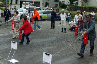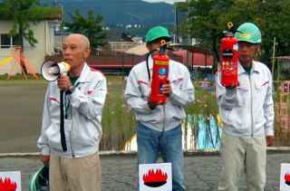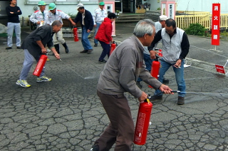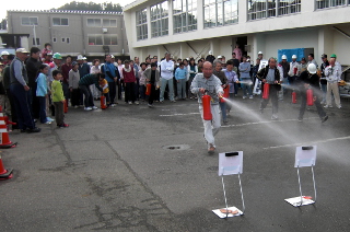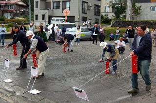 コミュニティーセンター駐車場「NPO法人セーフティーネットぼうさい」消火訓練指導
