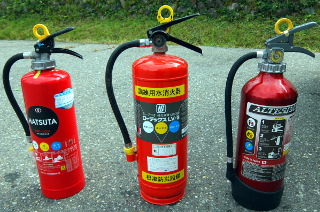 左から旧式、メーター付、破裂が起きない蓄圧式最新型