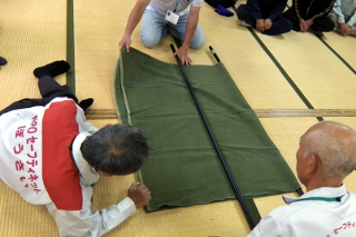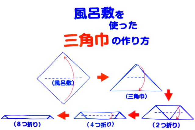 「風呂敷を使った三角巾の作り方」