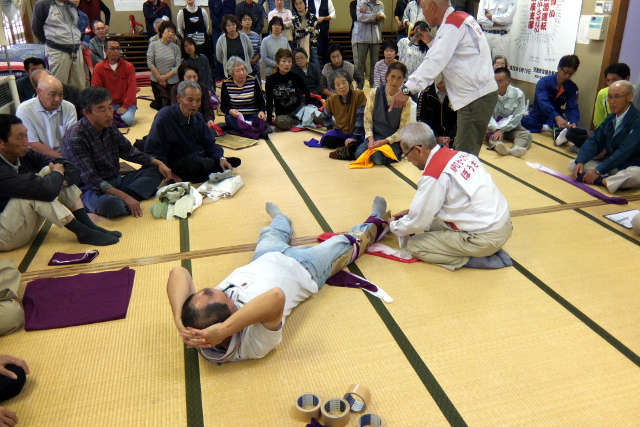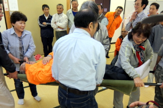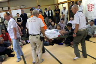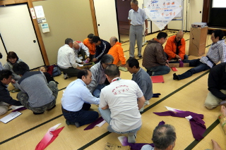10月5日(日)に防災訓練が行われました。 今年は避難訓練の後、コミュニティーセンターにてNPO法人セーフティーネットぼうさい様による「新座地区防災講習会」を開催し、 多くの住民の方々が実際に応急手当など体験しました。