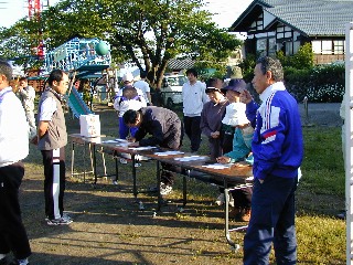 チャレンジデーに参加しラジオ体操を行ないました。受付けの様子です。