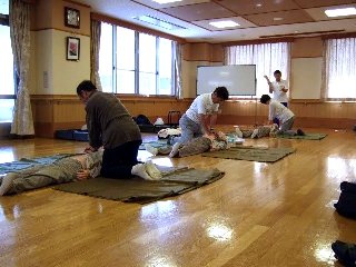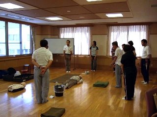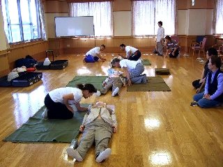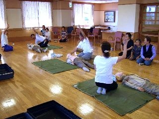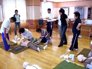 「新座地域防災防犯連絡協議会」と「新座体協」との共催で「三好園しんざ」の地域交流室で救急救命講習会が開かれました。 17名の方が熱心に受講されました。 最近各学校でも実施されている「AED」の部分は参考までに講習しましたが今回は認定講習にはしませんでした。