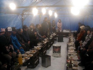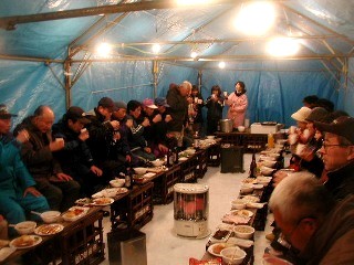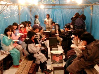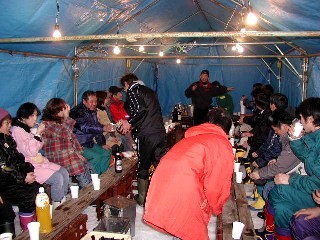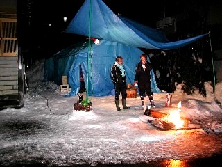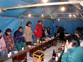 昔は雪で囲ってましたが、現在はテント2張りにブルーシートです。