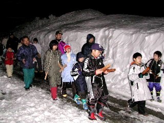夜道を鳥追いで区内を回ります。