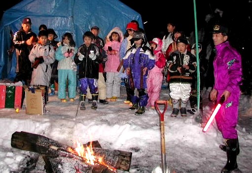 子供達が戻ってきて、鳥追いの唄合唱。