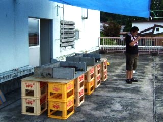 焼き場をセッテングして一服の人