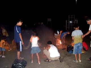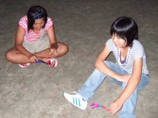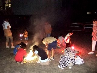 子供達はグランドで花火大会