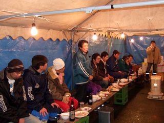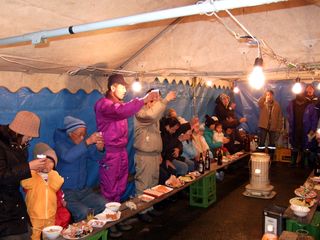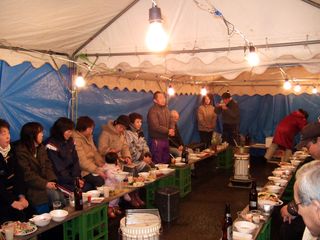 顔が隠れてますが区長の村山さんの音頭で乾杯!