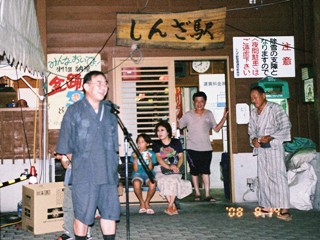 8月14日(木)午後7:30〜 ほくほく線しんざ駅前で恒例の盆踊り大会が開かれました。当日は新座地区はもとより、大井田や田川町などからも多くの人が集まり、盆踊りや抽選会を楽しみました。