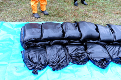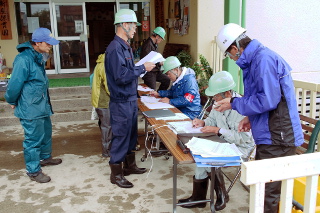 (実際の土のう作りは天気予報を見て前もって用意する)