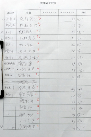 新座・七和地区対抗親善グランドゴルフ大会が開催されました。 大井田地区体協の方も参加し、 赤8ホール、青8ホール+赤8ホールの計24ホールを回りました。